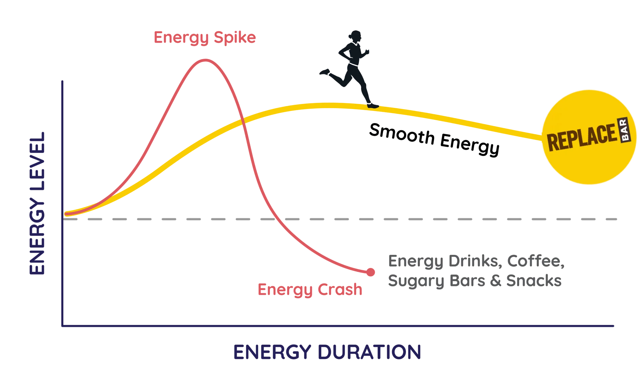 Wenn das Tief kommt und der Hunger zuschlägt, liefert REPLACE BAR eine cleane Form von langanhaltender Energie, die dich stundenlang satt hält.